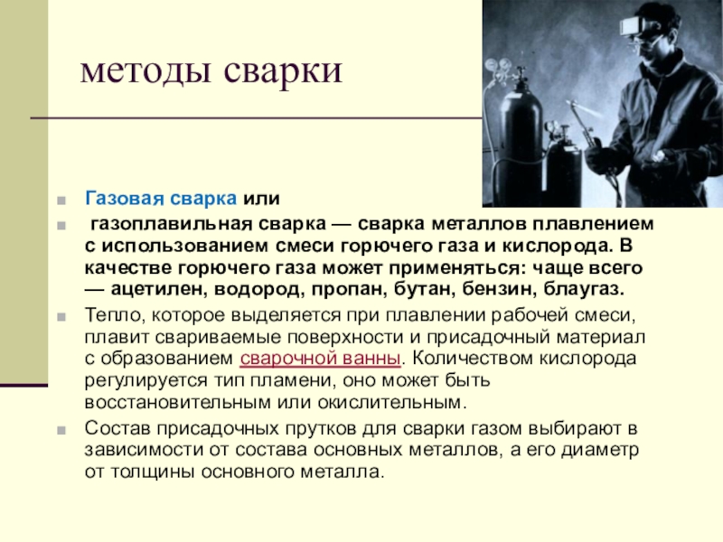 газоплавильная сварка — сварка металлов плавлением с использованием