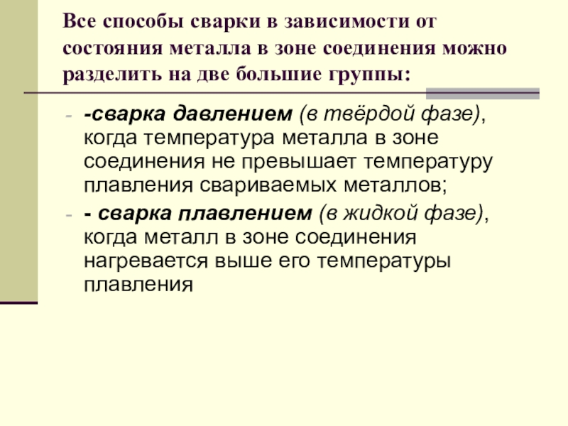 Все способы сварки в зависимости от состояния металла в зоне соединения