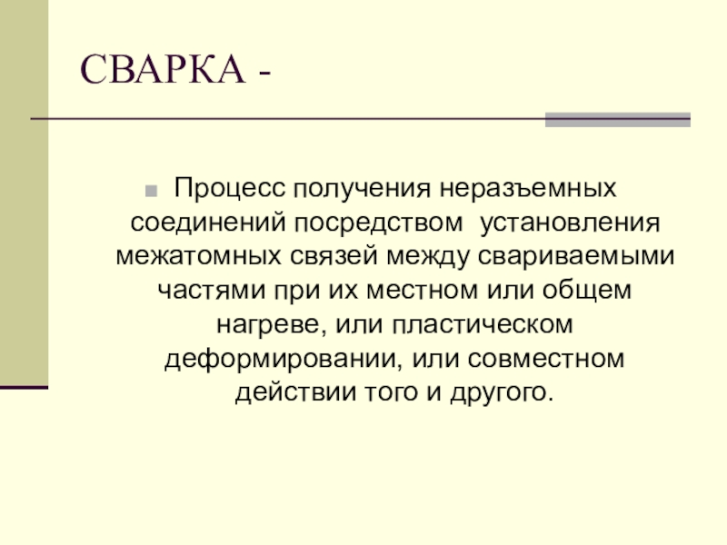 Процесс получения неразъемных соединений посредством установления межатомных связей между свариваемыми