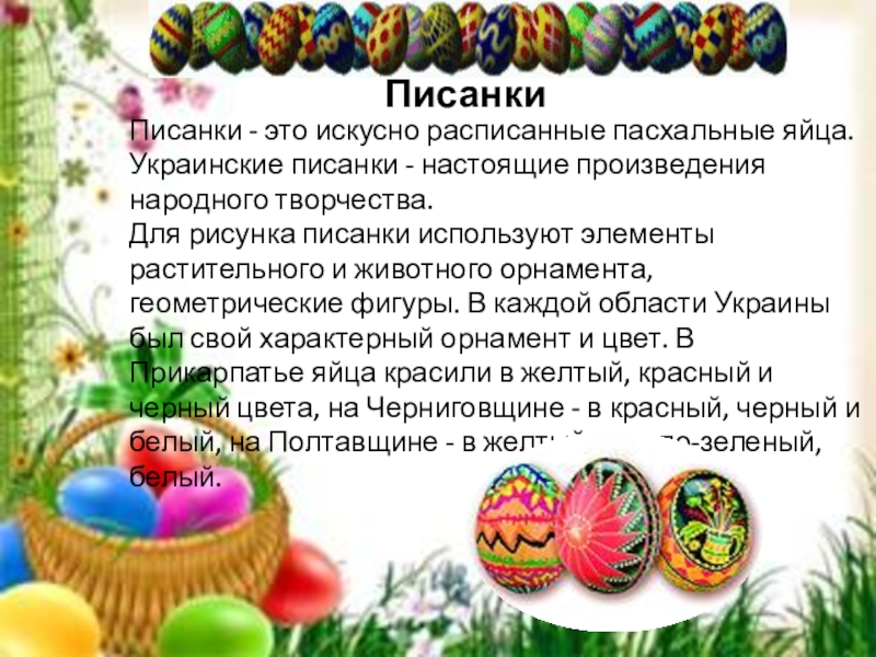 Слайд 23Писанки - это искусно расписанные пасхальные яйца. Украинские писанки - настоящие