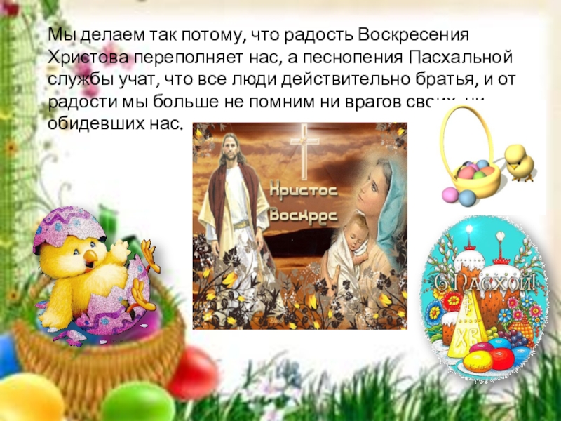 Слайд 9Мы делаем так потому, что радость Воскресения Христова переполняет нас, а