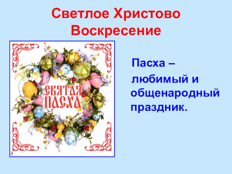 Светлое Христово Воскресение    Пасха –  любимый и  общенародный праздник.