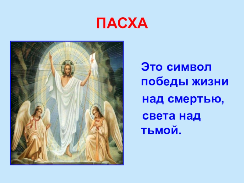 ПАСХА   Это символ победы жизни  над смертью,  света над  тьмой.