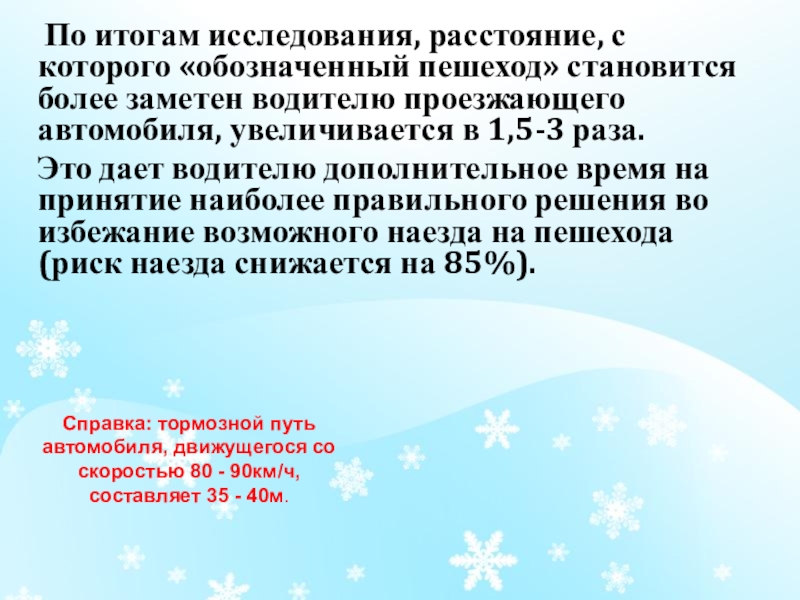 Справка: тормозной путь автомобиля, движущегося со скоростью 80 - 90км/ч, составляет 35 - 40м.