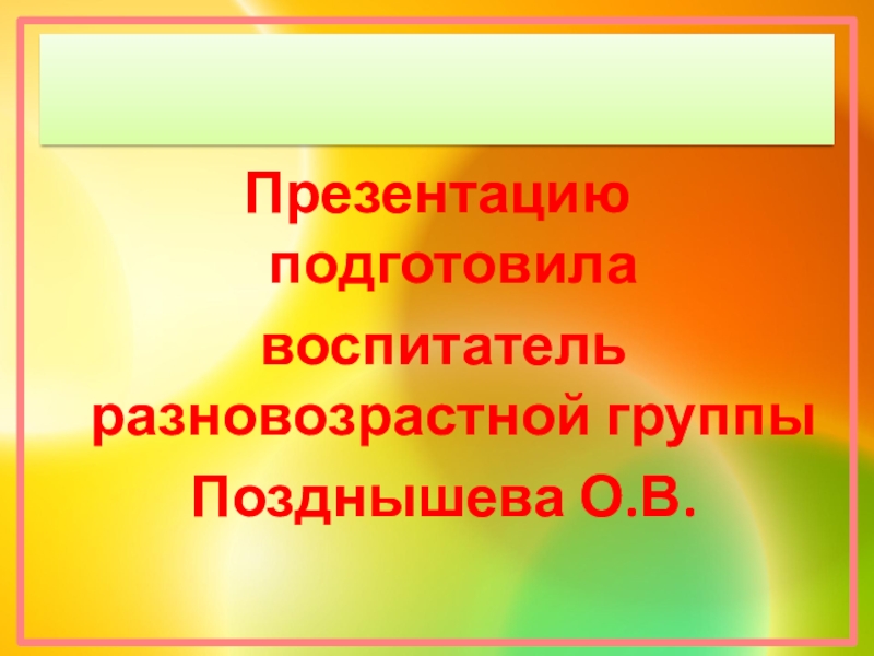 Презентацию подготовила воспитатель разновозрастной группы Позднышева О.В.