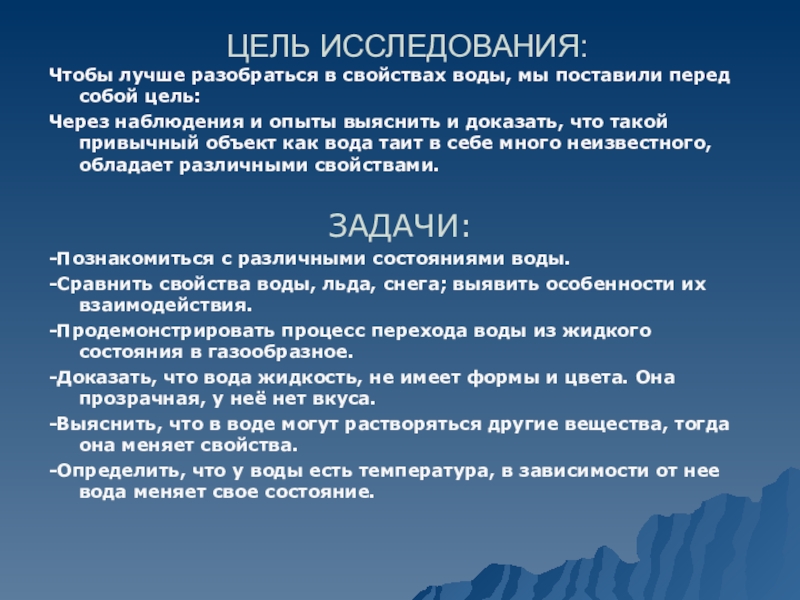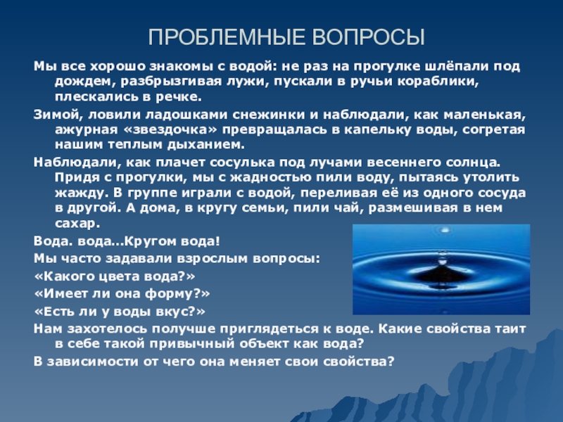 Чтобы лучше разобраться в свойствах воды, мы поставили перед собой