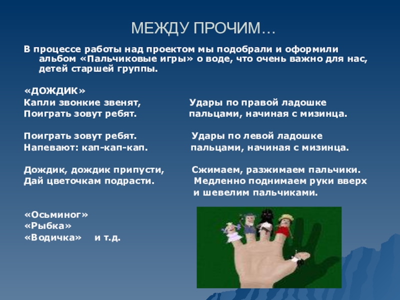 «Пальчиковые игры» о воде, что очень важно для нас, детей старшей группы.