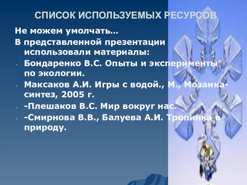 Слайд 13СПИСОК ИСПОЛЬЗУЕМЫХ РЕСУРСОВ