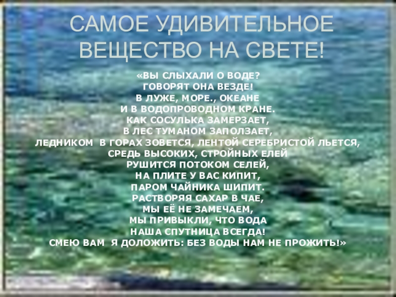 Слайд 2САМОЕ УДИВИТЕЛЬНОЕ ВЕЩЕСТВО НА СВЕТЕ!