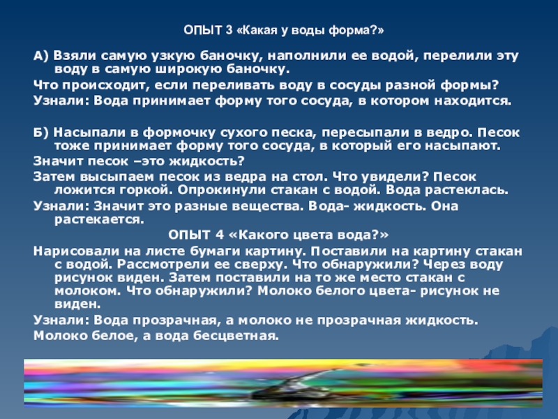 Слайд 9ОПЫТ 3 «Какая у воды форма?»