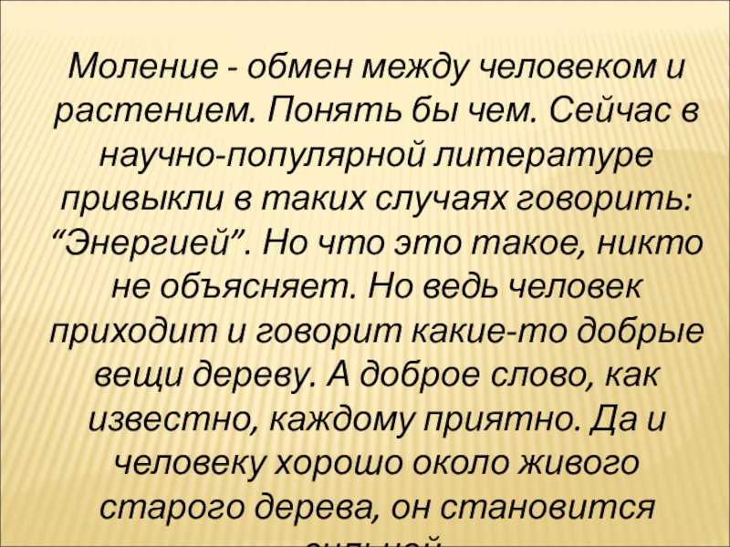 Слайд 18Моление - обмен между человеком и растением. Понять бы чем. Сейчас