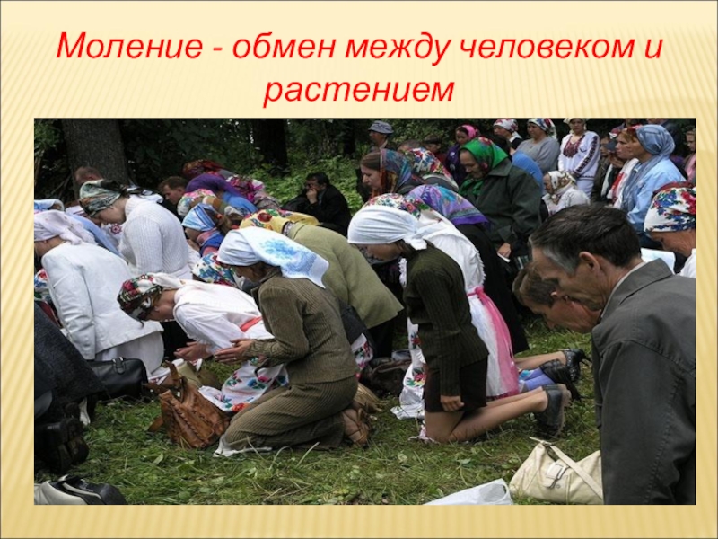 Слайд 17Моление - обмен между человеком и растением