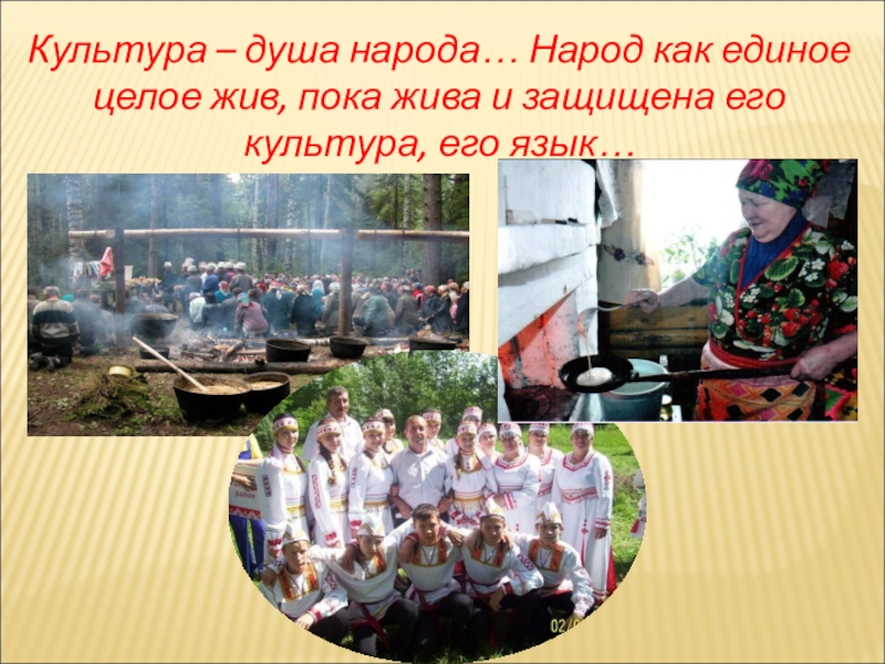 Слайд 2Культура – душа народа… Народ как единое целое жив, пока жива