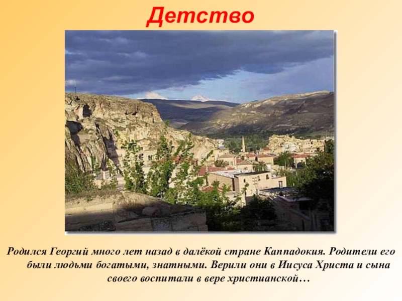 Родился Георгий много лет назад в далёкой стране Каппадокия. Родители его