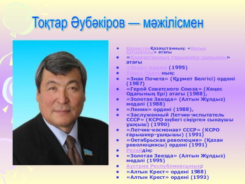 Әубәкіров, Тоқтар Оңғарбайұлы — Қазақстанның тұңғыш ғарышкер ұшқышы