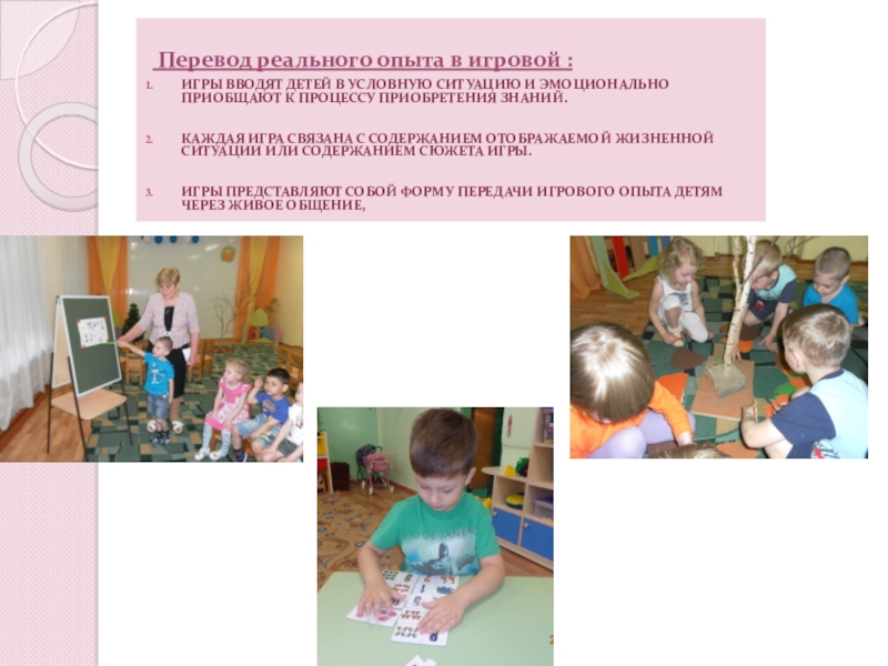 Во время организации образовательной деятельности по моделированию игрового опыта детей упускается момент прослеживания структуры и взаимосвязи компонентов, которые помогают овладеть необходимыми знаниями, игровыми действиями , детям не хватает жизненного опыта.