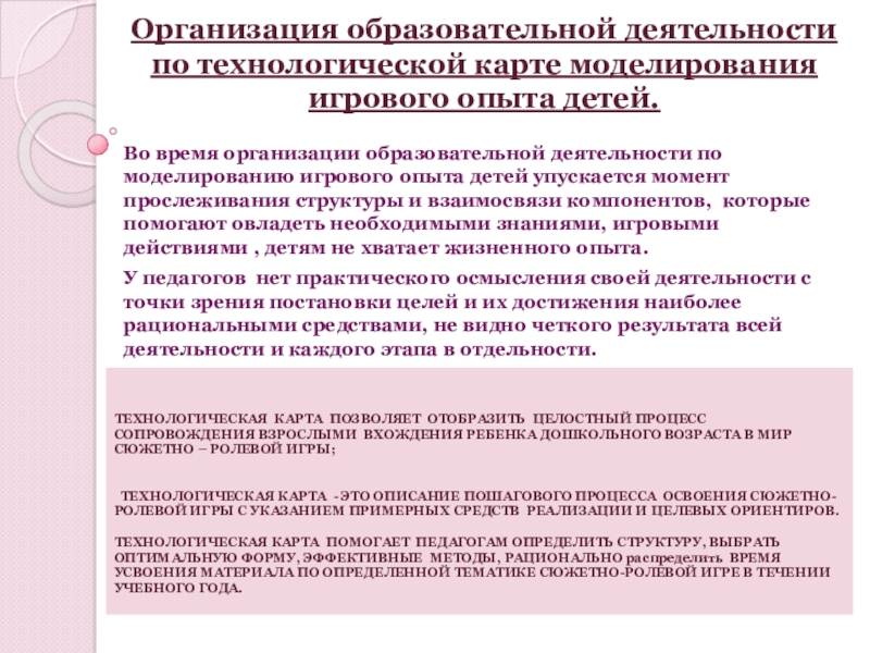Организация образовательной деятельности по технологической карте моделирования игрового опыта детей.