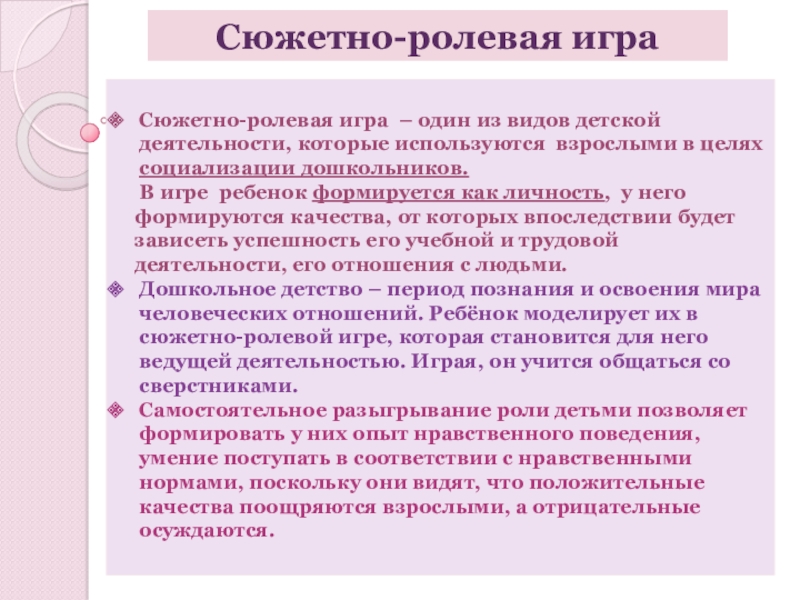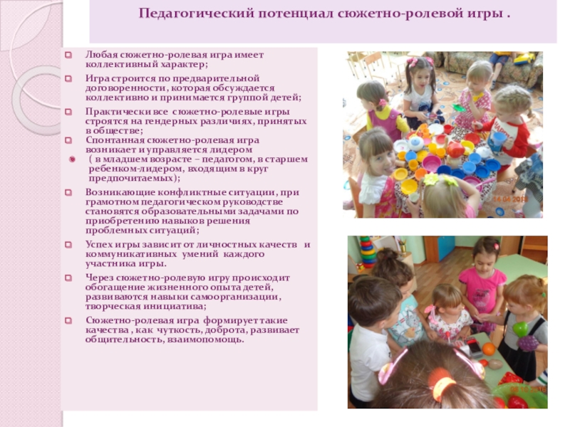 2. Сюжетно-ролевые игры являются средством приложения природной активности ребенка;