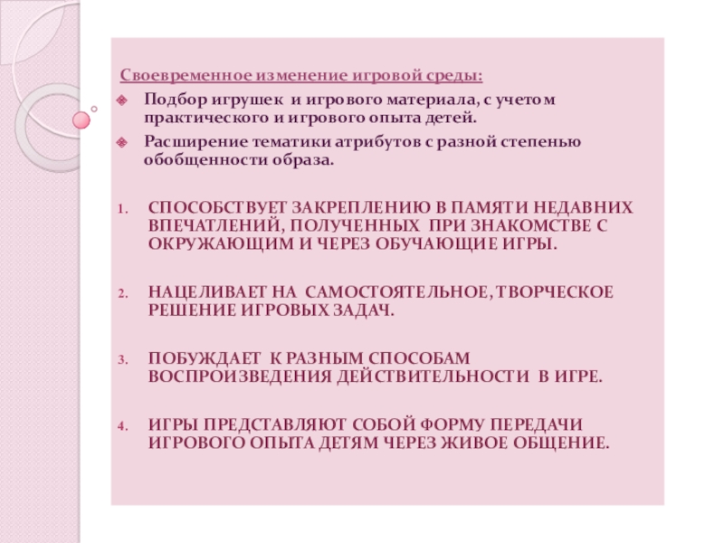 1. Сюжетно-ролевые игры должны соответствовать возрасту и потребностям детей;