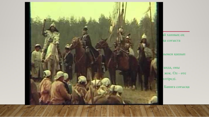 Абылай Хан - Қазақ халқының Ұлы ханы. Қалмақтармен соғысқан. Хан Батыр Баянға соғысқа қатысуына тиым салды.