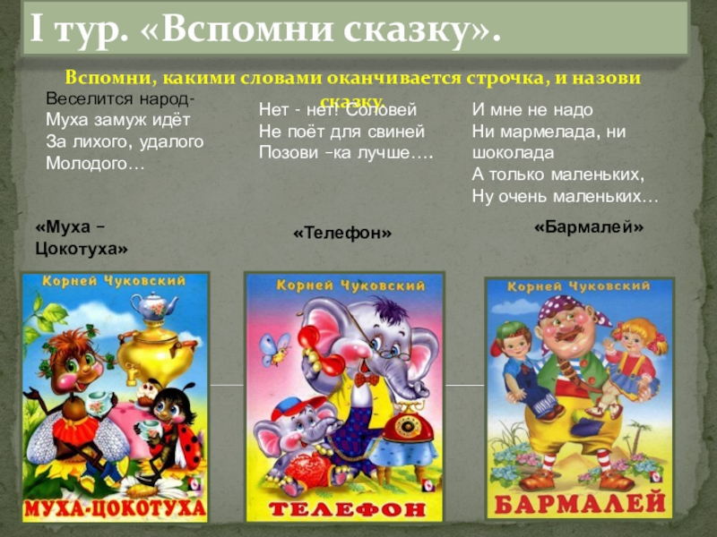 Вспомни, какими словами оканчивается строчка, и назови сказку.