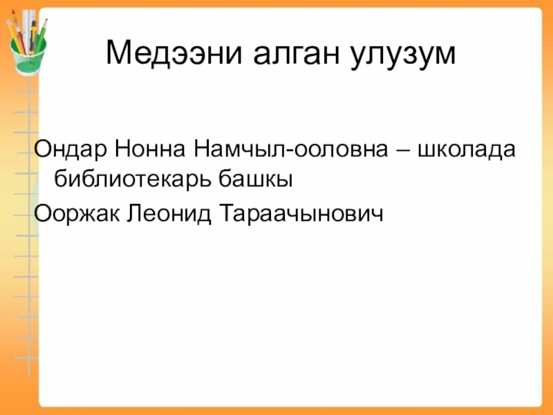 Эртем удуртукчузу Ооржак Г.С.
