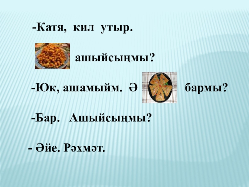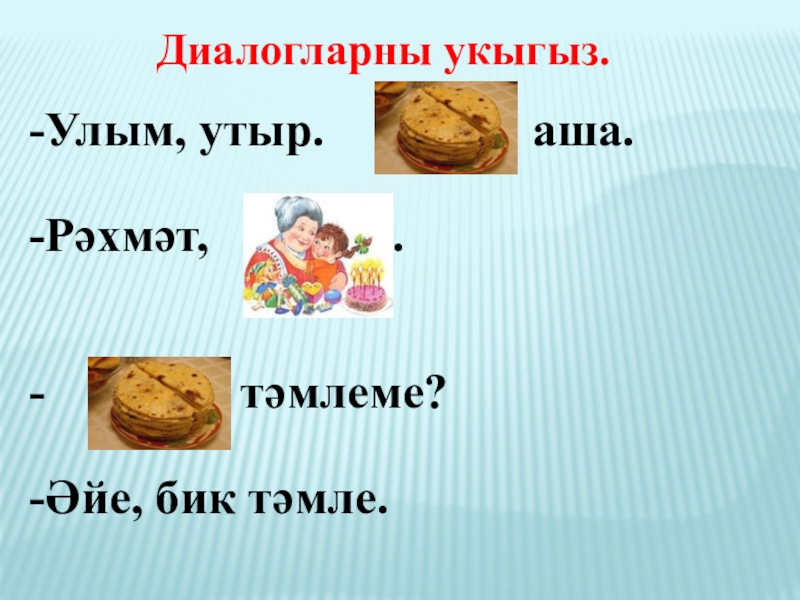 Диалогларны укыгыз.Улым, утыр.         аша.Рәхмәт,