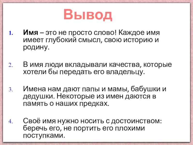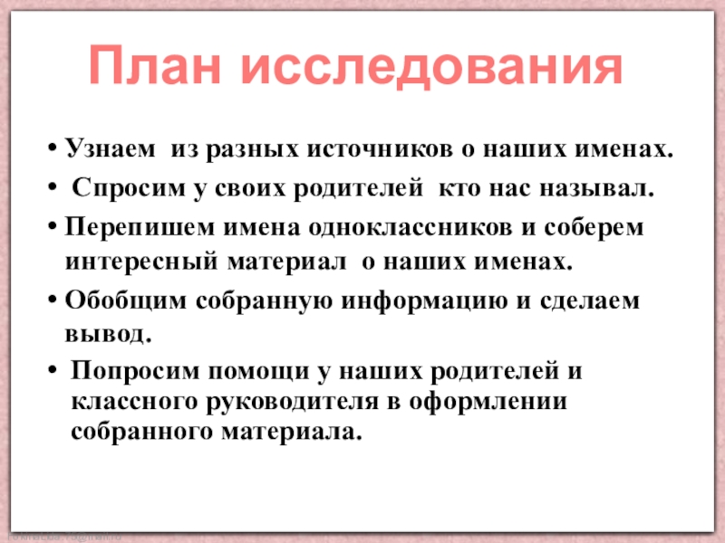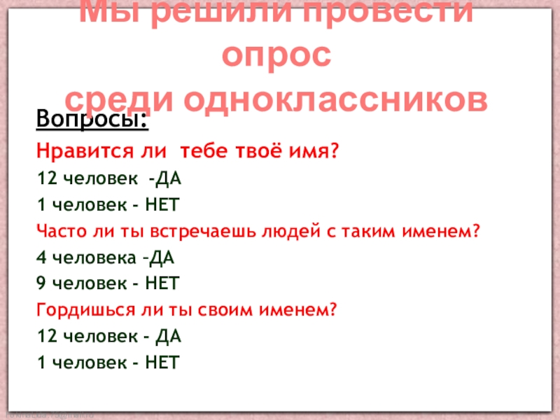 своего имени и имен своих одноклассников.