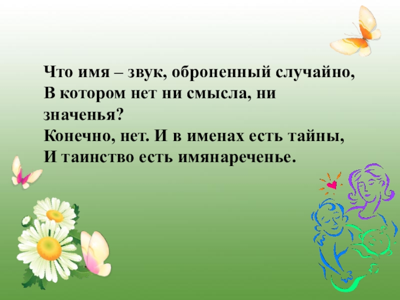 что обозначает то или иное имя для мальчика и девочки. Нам интересно узнать каково точное значение имени, которым нарекли нас наши родители, какова его история, этимология, что это имя означает для других людей, и что предрекает нам. Полная тайна имени может раскрыть для нас потаенные черты характера наших друзей, близких и коллег, помочь избежать ошибок в общении с ними.