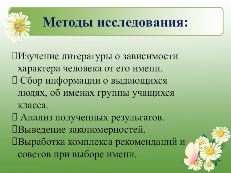 Выработка комплекса рекомендаций и советов при выборе имени.