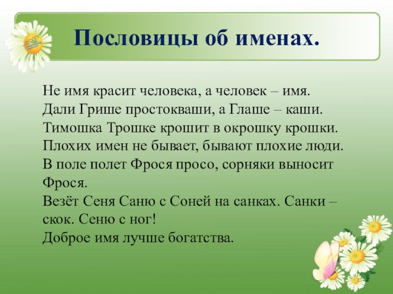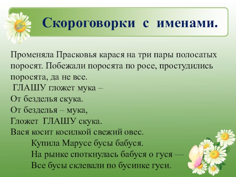 В поле полет Фрося просо, сорняки выносит Фрося.