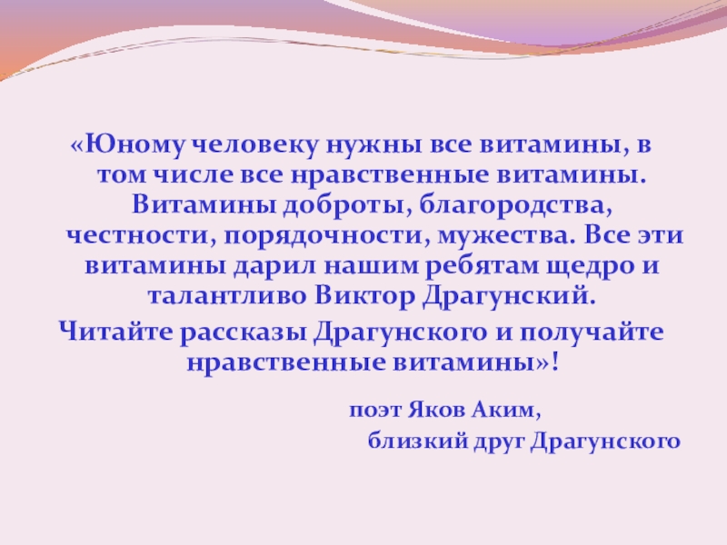 Читайте рассказы Драгунского и получайте нравственные витамины»!