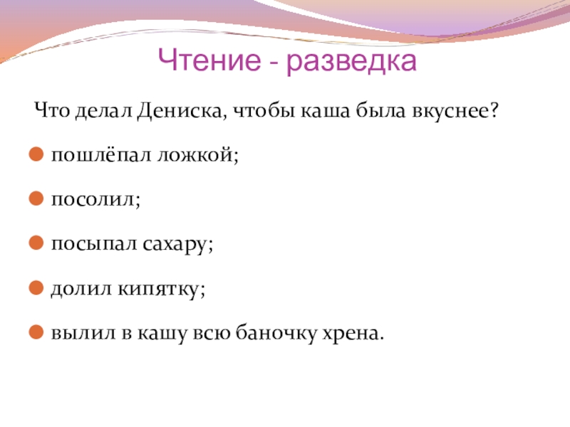 Что испытывал Дениска, когда экспериментировал с кашей?