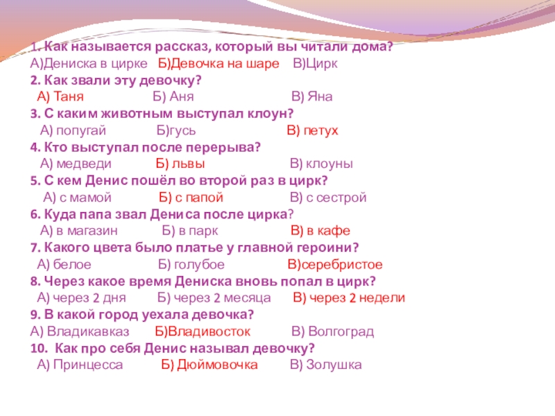 Слайд 51. Как называется рассказ, который вы читали дома?