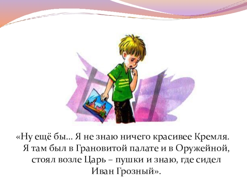 Слайд 27«Ну ещё бы… Я не знаю ничего красивее Кремля. Я там