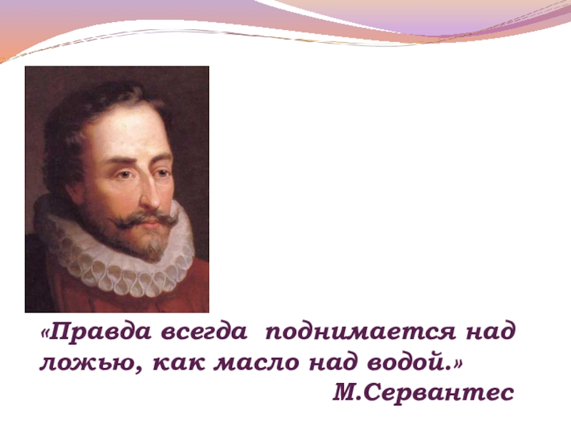 Слайд 11«Правда всегда поднимается над ложью, как масло над водой.»
