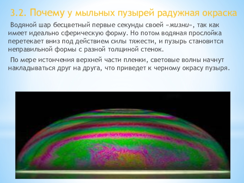 Слайд 63.2. Почему у мыльных пузырей радужная окраска