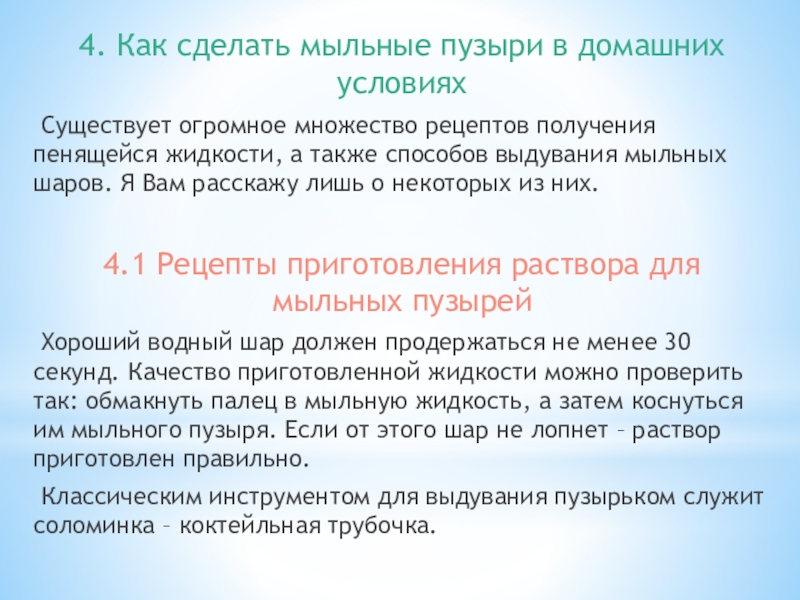 Слайд 114. Как сделать мыльные пузыри в домашних условиях