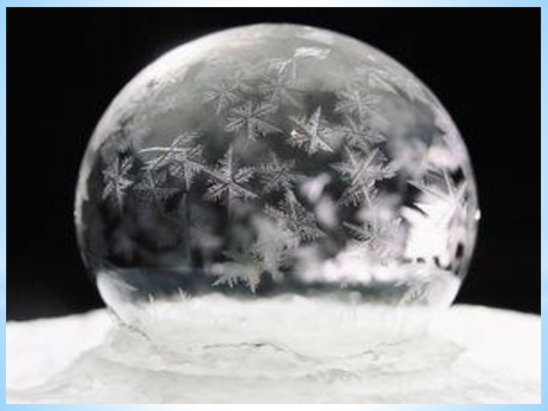пузыри легко лопаются. Однако, если уровень столбика термометра поползет вниз до отметки -7ºС тонкая пленка пузыря превращается в корочку льда. Если он упадет на пол, то не разлетится на миллион кристаллов, как стеклянная елочная игрушка. На нем лишь появятся вмятины, а отдельные обломки свернутся в трубочку.