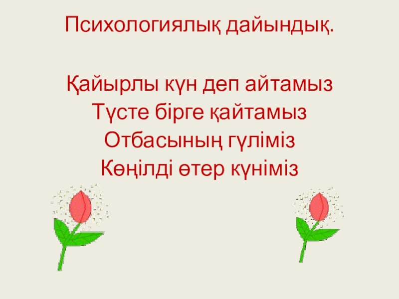 Психологиялық дайындық. Қайырлы күн деп айтамызТүсте бірге қайтамызОтбасының гүлімізКөңілді өтер күніміз