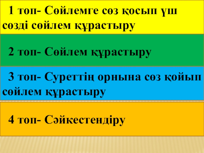 3 топ- Суреттің орнына сөз қойып сөйлем құрастыру