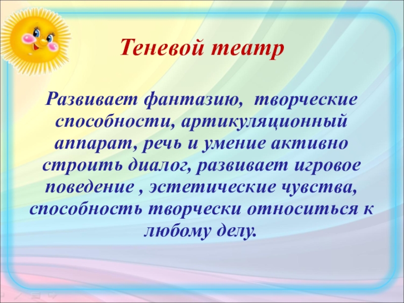 Слайд 2 Как показывает педагогический опыт, значение театрализованной деятельности для разностороннего