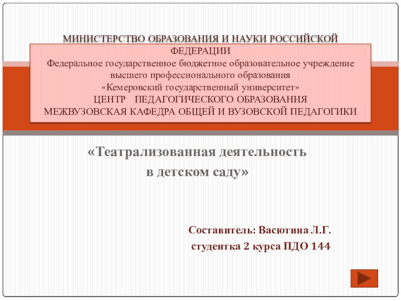 МЕЖВУЗОВСКАЯ КАФЕДРА ОБЩЕЙ И ВУЗОВСКОЙ ПЕДАГОГИКИ