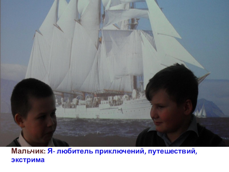 Слайд 7Мальчик: Я- любитель приключений, путешествий, экстрима