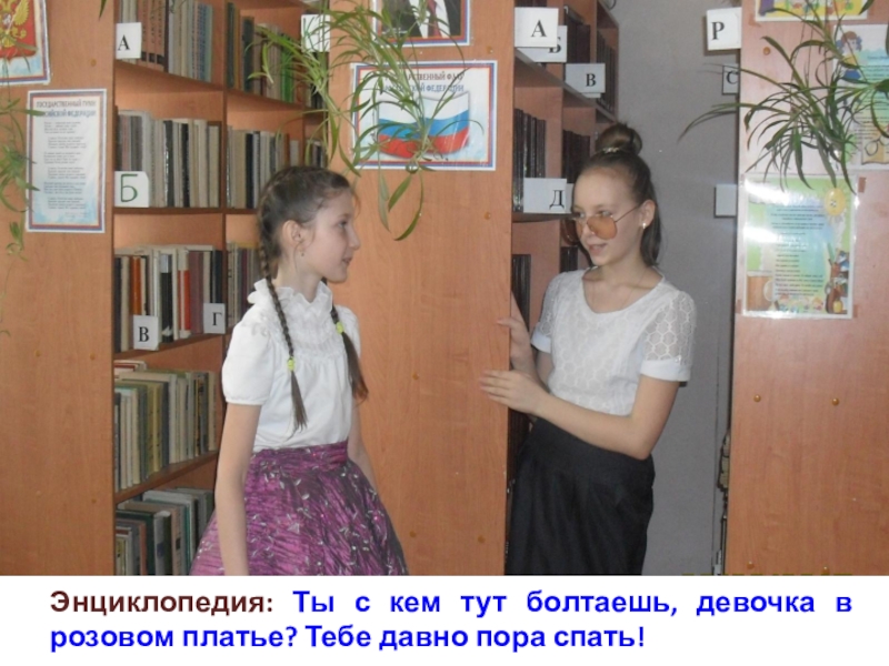 Слайд 5Энциклопедия: Ты с кем тут болтаешь, девочка в розовом платье? Тебе