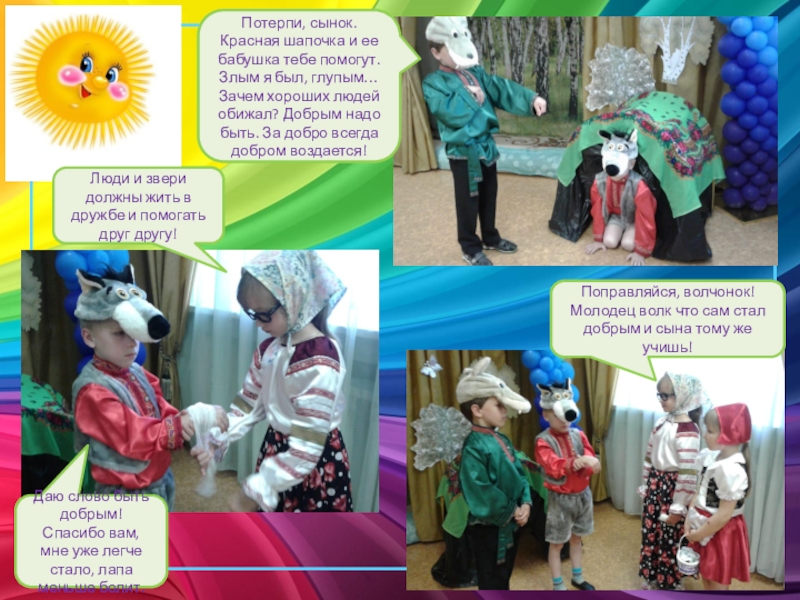 Поправляйся, волчонок! Молодец волк что сам стал добрым и сына тому же учишь!