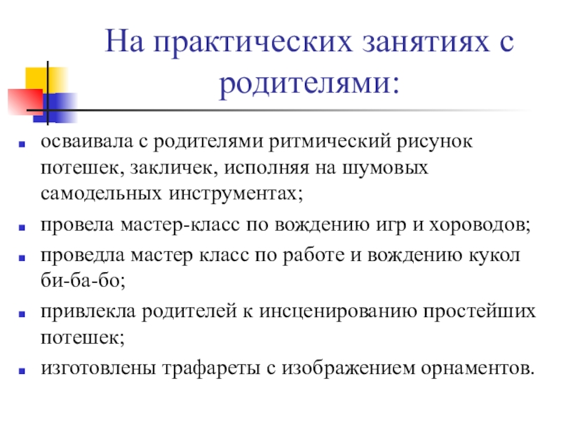 Слайд 8На практических занятиях с родителями: