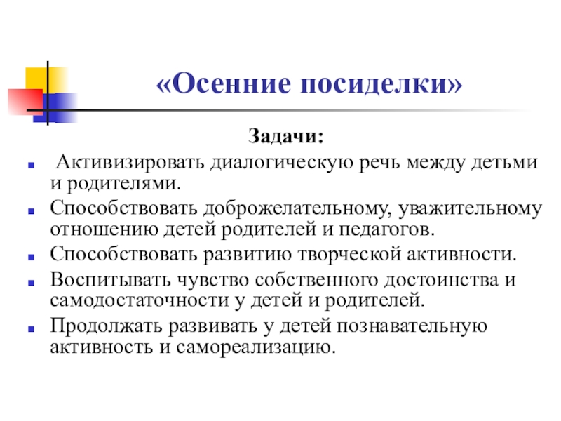 Активизировать диалогическую речь между детьми и родителями.