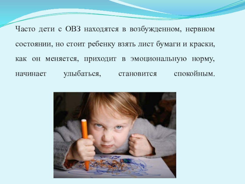 Слайд 8Часто дети с ОВЗ находятся в возбужденном, нервном состоянии, но стоит
