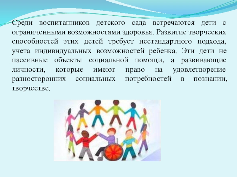 Слайд 4Среди воспитанников детского сада встречаются дети с ограниченными возможностями здоровья. Развитие